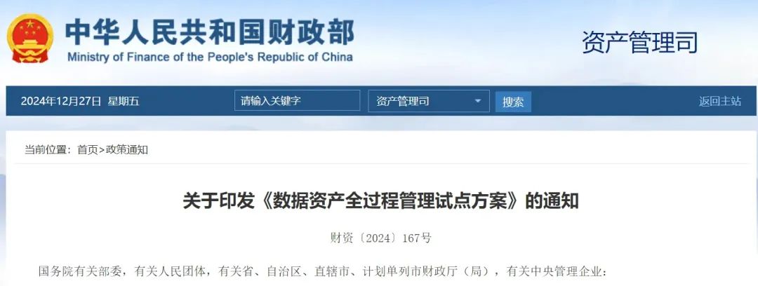 政策丨?重磅!財(cái)政部:在中央部門、央企、地方財(cái)政部門開展數(shù)據(jù)資產(chǎn)全過程管理試點(diǎn)