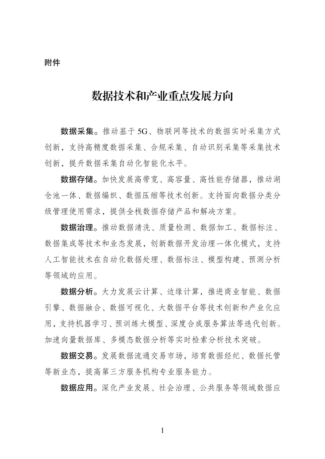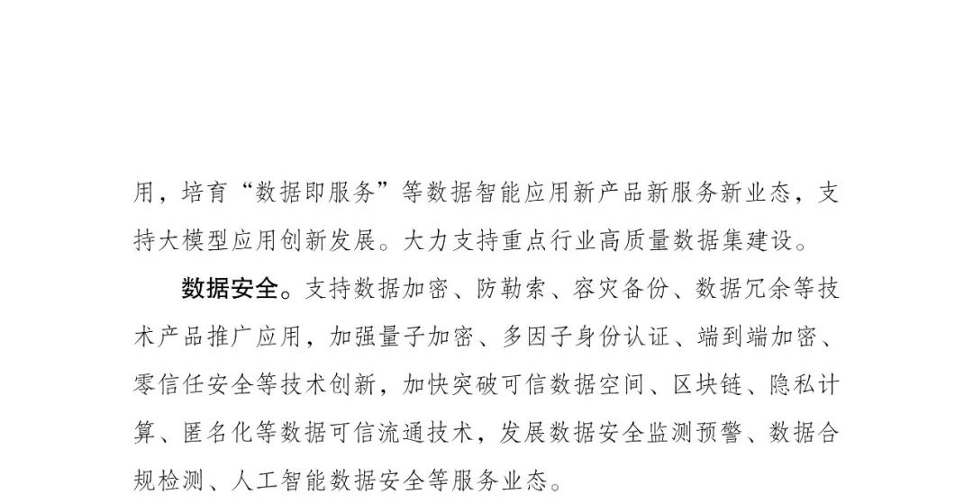 各省、自治區(qū)、直轄市、新疆生產(chǎn)建設(shè)兵團(tuán)發(fā)展改革委、數(shù)據(jù)管理部門(mén)、教育管理部門(mén)、財(cái)政廳(局)、金融監(jiān)管局、證監(jiān)局:數(shù)據(jù)產(chǎn)業(yè)是利用現(xiàn)代信息技術(shù)對(duì)數(shù)據(jù)資源進(jìn)行產(chǎn)品或服務(wù)開(kāi)發(fā),并推動(dòng)其流通應(yīng)用所形成的新興產(chǎn)業(yè),包括數(shù)據(jù)采集匯聚、計(jì)算存儲(chǔ)、流通交易、開(kāi)發(fā)利用、安全治理和數(shù)據(jù)基礎(chǔ)設(shè)施建設(shè)等。發(fā)展數(shù)據(jù)產(chǎn)業(yè)是深化數(shù)據(jù)要素市場(chǎng)化配置改革、構(gòu)建以數(shù)據(jù)為關(guān)鍵要素的數(shù)字經(jīng)濟(jì)的重要舉措,是推進(jìn)國(guó)家大數(shù)據(jù)戰(zhàn)略、加快建設(shè)數(shù)字中國(guó)的重要支撐。為貫徹落實(shí)黨中央、國(guó)務(wù)院決策部署,促進(jìn)數(shù)據(jù)產(chǎn)業(yè)高質(zhì)量發(fā)展,現(xiàn)提出以下意見(jiàn)。促進(jìn)數(shù)據(jù)產(chǎn)業(yè)發(fā)展,要以習(xí)近平新時(shí)代中國(guó)特色社會(huì)主義思想為指導(dǎo),全面貫徹落實(shí)黨的二十大和二十屆二中、三中全會(huì)精神,完整準(zhǔn)確全面貫徹新發(fā)展理念。統(tǒng)籌發(fā)展和安全,面向數(shù)據(jù)采集匯聚、計(jì)算存儲(chǔ)、流通交易、開(kāi)發(fā)利用、安全治理和數(shù)據(jù)基礎(chǔ)設(shè)施建設(shè),制定激勵(lì)政策、優(yōu)化產(chǎn)業(yè)布局、培育競(jìng)爭(zhēng)主體、促進(jìn)技術(shù)創(chuàng)新、健全產(chǎn)業(yè)生態(tài),充分發(fā)揮市場(chǎng)在資源配置中的決定性作用,更好發(fā)揮政府作用,促進(jìn)數(shù)據(jù)企業(yè)成長(zhǎng),為培育全國(guó)一體化數(shù)據(jù)市場(chǎng)、發(fā)展新質(zhì)生產(chǎn)力、塑造發(fā)展新動(dòng)能新優(yōu)勢(shì)提供有力支撐。到2029年,數(shù)據(jù)產(chǎn)業(yè)規(guī)模年均復(fù)合增長(zhǎng)率超過(guò)15%,數(shù)據(jù)產(chǎn)業(yè)結(jié)構(gòu)明顯優(yōu)化,數(shù)據(jù)技術(shù)創(chuàng)新能力躋身世界先進(jìn)行列,數(shù)據(jù)產(chǎn)品和服務(wù)供給能力大幅提升,催生一批數(shù)智應(yīng)用新產(chǎn)品新服務(wù)新業(yè)態(tài),涌現(xiàn)一批具有國(guó)際競(jìng)爭(zhēng)力的數(shù)據(jù)企業(yè),數(shù)據(jù)產(chǎn)業(yè)綜合實(shí)力顯著增強(qiáng),區(qū)域聚集和協(xié)同發(fā)展格局基本形成。二、加強(qiáng)數(shù)據(jù)產(chǎn)業(yè)規(guī)劃布局(一)優(yōu)化產(chǎn)業(yè)發(fā)展結(jié)構(gòu)面向國(guó)家重大戰(zhàn)略需求,圍繞數(shù)據(jù)領(lǐng)域核心技術(shù)突破、資源體系構(gòu)建和數(shù)據(jù)基礎(chǔ)設(shè)施建設(shè)等,組織實(shí)施一批補(bǔ)短板、強(qiáng)基礎(chǔ)、利長(zhǎng)遠(yuǎn)的重大工程,實(shí)現(xiàn)數(shù)據(jù)科技高水平自立自強(qiáng)。把握數(shù)據(jù)產(chǎn)業(yè)變革趨勢(shì),面向數(shù)據(jù)采集、存儲(chǔ)、治理、分析、流通、應(yīng)用等關(guān)鍵環(huán)節(jié),加快培育新技術(shù)新應(yīng)用新業(yè)態(tài),推動(dòng)各類業(yè)態(tài)協(xié)同發(fā)展,提高數(shù)據(jù)產(chǎn)業(yè)生態(tài)塑造能力。(二)促進(jìn)產(chǎn)業(yè)鏈協(xié)同發(fā)展鼓勵(lì)有條件的行業(yè)龍頭企業(yè)、互聯(lián)網(wǎng)平臺(tái)企業(yè)設(shè)立數(shù)據(jù)業(yè)務(wù)獨(dú)立經(jīng)營(yíng)主體,支持?jǐn)?shù)據(jù)企業(yè)做強(qiáng)做優(yōu)做大,促進(jìn)集約化、規(guī)?;l(fā)展。大力培育創(chuàng)新型中小數(shù)據(jù)企業(yè),支持向?qū)I(yè)化、精細(xì)化發(fā)展,引導(dǎo)龍頭企業(yè)為中小企業(yè)提供數(shù)據(jù)、算法、算力等資源使用便利。加強(qiáng)產(chǎn)學(xué)研用協(xié)作,打造數(shù)據(jù)產(chǎn)業(yè)創(chuàng)新聯(lián)合體,構(gòu)建大中小企業(yè)融通發(fā)展、產(chǎn)業(yè)鏈上下游協(xié)同創(chuàng)新的生態(tài)體系。(三)推動(dòng)數(shù)據(jù)產(chǎn)業(yè)區(qū)域聚集發(fā)揮數(shù)據(jù)流動(dòng)不受地理區(qū)位限制的優(yōu)勢(shì),支持有條件的地方立足產(chǎn)業(yè)基礎(chǔ)和資源稟賦,建設(shè)數(shù)據(jù)產(chǎn)業(yè)集聚區(qū),為數(shù)據(jù)企業(yè)用數(shù)、用云、用能、用地和人才引進(jìn)等提供便利政策。加強(qiáng)分類指導(dǎo),圍繞資源匯聚、技術(shù)創(chuàng)新、應(yīng)用牽引、算力支撐等方向,引導(dǎo)各地逐步形成協(xié)同互補(bǔ)、特色發(fā)展的格局。支持企業(yè)依法依規(guī)對(duì)其合法獲取的數(shù)據(jù)進(jìn)行開(kāi)發(fā)利用,培育一批貼近業(yè)務(wù)需求的行業(yè)性數(shù)據(jù)資源企業(yè)。鼓勵(lì)企業(yè)間按照市場(chǎng)化方式授權(quán)使用數(shù)據(jù)、共同分享收益,推動(dòng)企業(yè)跨行業(yè)發(fā)展。(二)做強(qiáng)數(shù)據(jù)技術(shù)企業(yè)支持企業(yè)加大創(chuàng)新投入,培育一批面向數(shù)據(jù)采集匯聚、計(jì)算存儲(chǔ)、流通交易、開(kāi)發(fā)利用的技術(shù)創(chuàng)新型企業(yè),重點(diǎn)支持原創(chuàng)性引領(lǐng)性數(shù)據(jù)科技創(chuàng)新發(fā)展。(三)扶持?jǐn)?shù)據(jù)服務(wù)企業(yè)支持企業(y