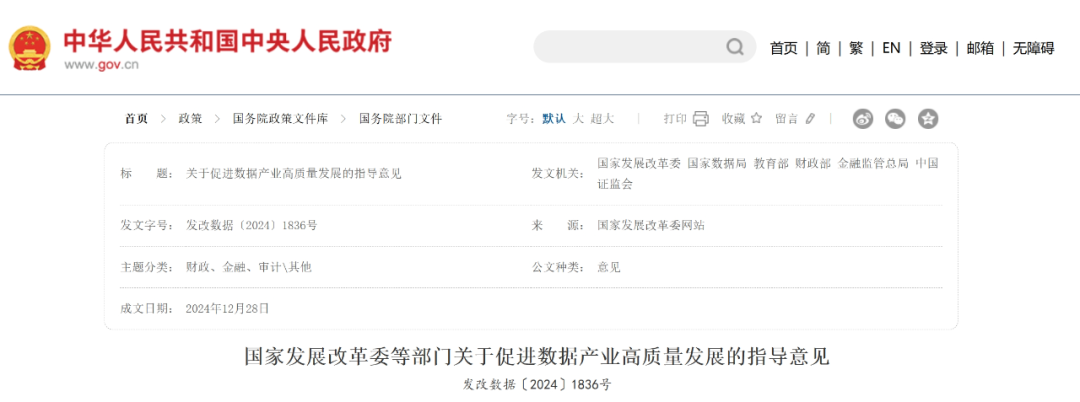 國(guó)家發(fā)改委等六部門(mén)發(fā)布關(guān)于促進(jìn)數(shù)據(jù)產(chǎn)業(yè)高質(zhì)量發(fā)展的指導(dǎo)意見(jiàn),到2029年,數(shù)據(jù)產(chǎn)業(yè)規(guī)模年均復(fù)合增長(zhǎng)率超過(guò)15%,數(shù)據(jù)產(chǎn)業(yè)結(jié)構(gòu)明顯優(yōu)化,數(shù)據(jù)技術(shù)創(chuàng)新能力躋身世界先進(jìn)行列,數(shù)據(jù)產(chǎn)品和服務(wù)供給能力大幅提升,催生一批數(shù)智應(yīng)用新產(chǎn)品新服務(wù)新業(yè)態(tài),涌現(xiàn)一批具有國(guó)際競(jìng)爭(zhēng)力的數(shù)據(jù)企業(yè),數(shù)據(jù)產(chǎn)業(yè)綜合實(shí)力顯著增強(qiáng),區(qū)域聚集和協(xié)同發(fā)展格局基本形成。