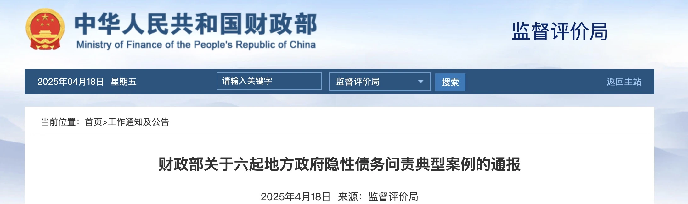 財政部關于六起地方政府隱性債務問責典型案例的通報