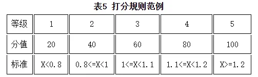 打分規(guī)則。采用比值賦分方式,由企業(yè)自身數(shù)據(jù)與行業(yè)平均、頭部企業(yè)或自身歷史水平的相應(yīng)比值(例如,企業(yè)自身/行業(yè)平均=X),對(duì)應(yīng)得到不同區(qū)間分?jǐn)?shù)。其中,正向與負(fù)向指標(biāo)以及部分指標(biāo)的打分區(qū)間和對(duì)應(yīng)分?jǐn)?shù)可進(jìn)行標(biāo)準(zhǔn)化調(diào)整。