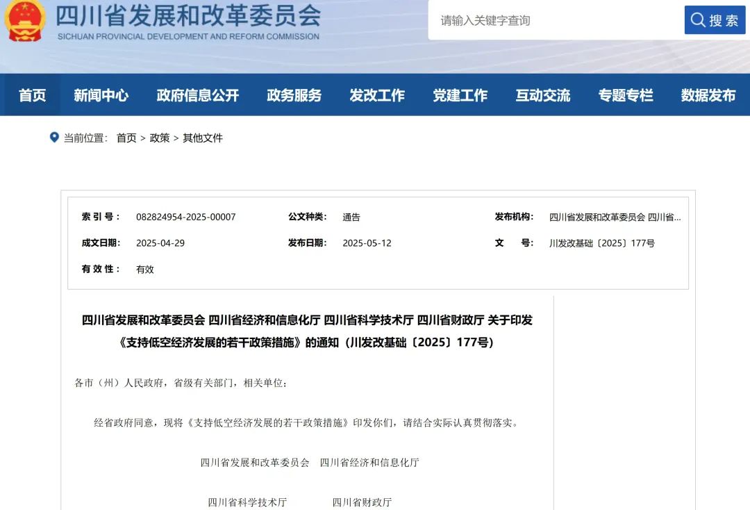 四川發(fā)布低空經濟16條發(fā)布!單項獎補高達3500萬元!真金白銀支持低空經濟(附全文)