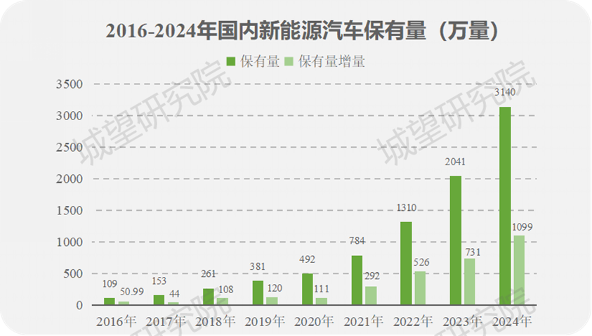 圖1:2016-2024年國內(nèi)新能源汽車保有量