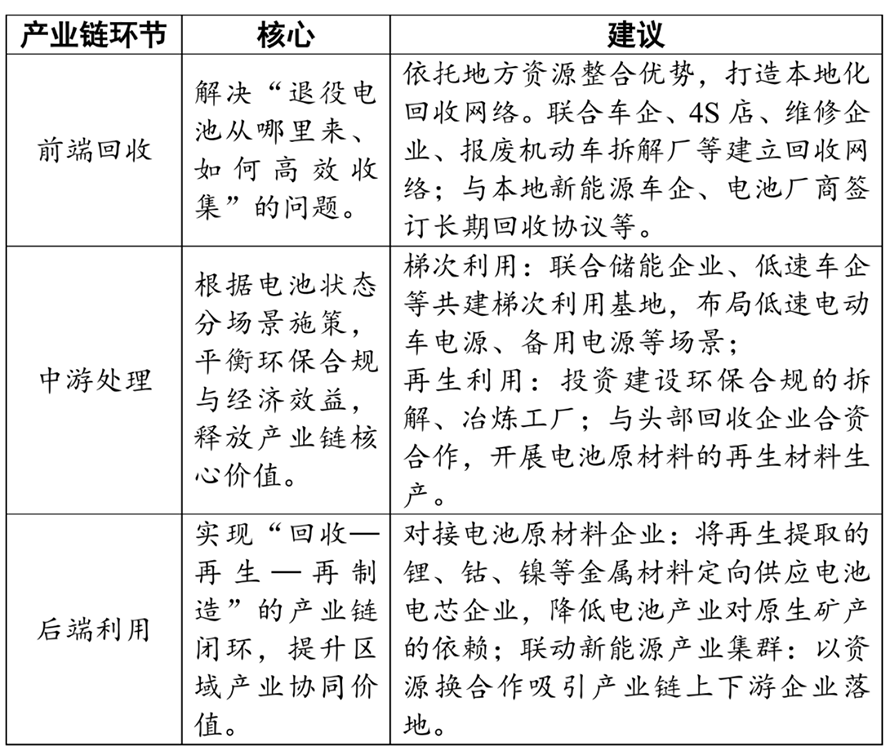 表1:布局新能源電池回收產(chǎn)業(yè)鏈環(huán)節(jié)及建議