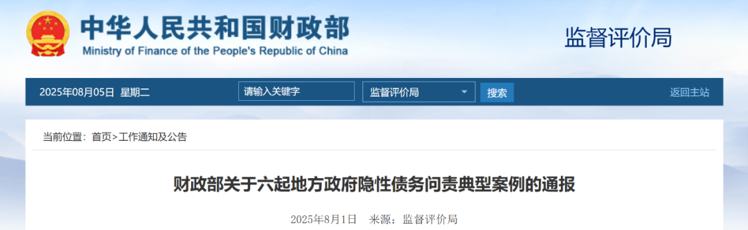 通報(bào)6起地方政府隱性債務(wù)問責(zé)案例