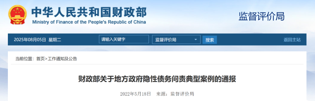 2022年7月:通報(bào)8起融資平臺(tái)公司違法違規(guī)融資新增地方政府隱性債務(wù)問責(zé)案例