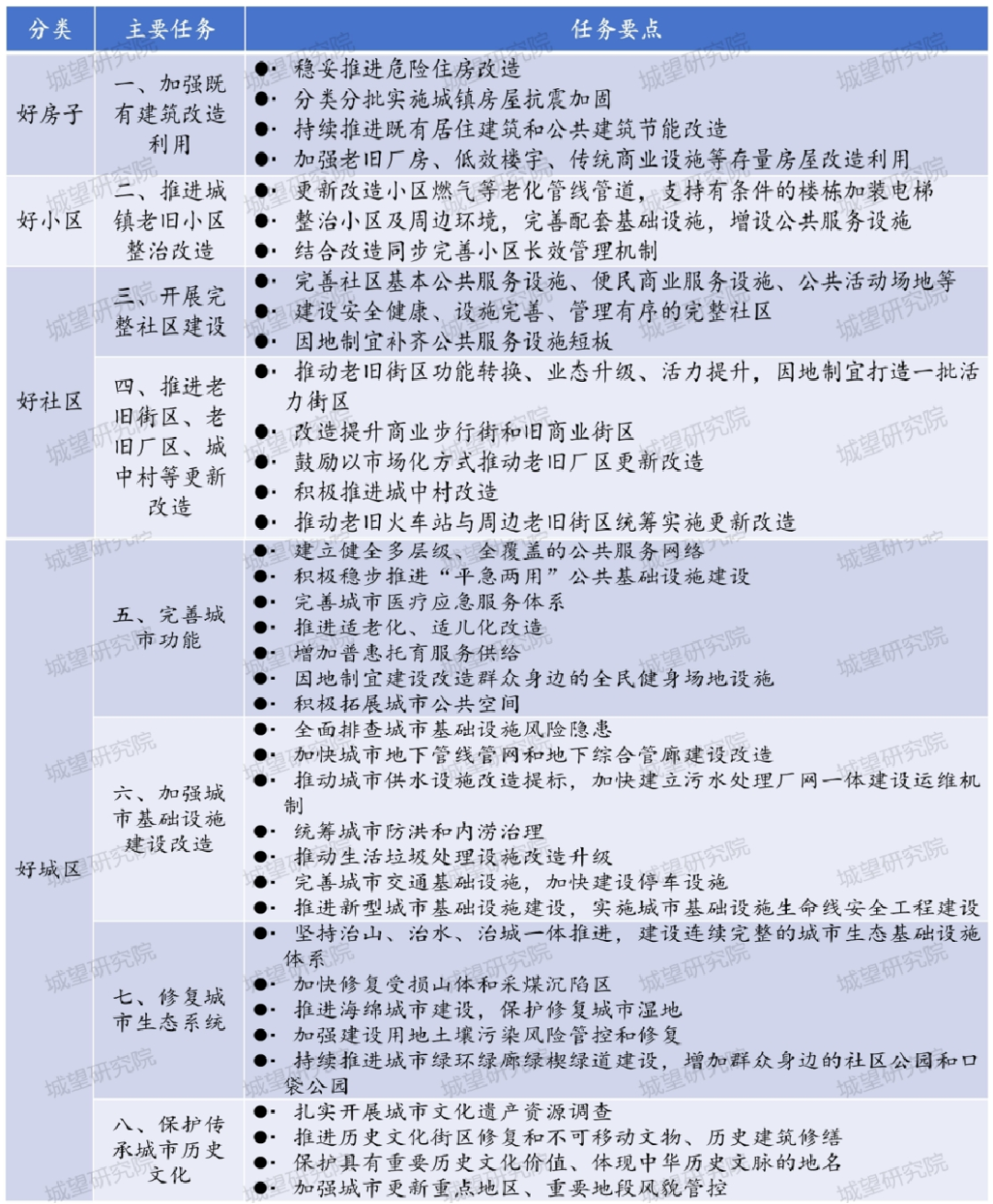 表1:城市更新八大任務(wù)